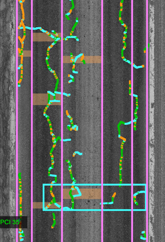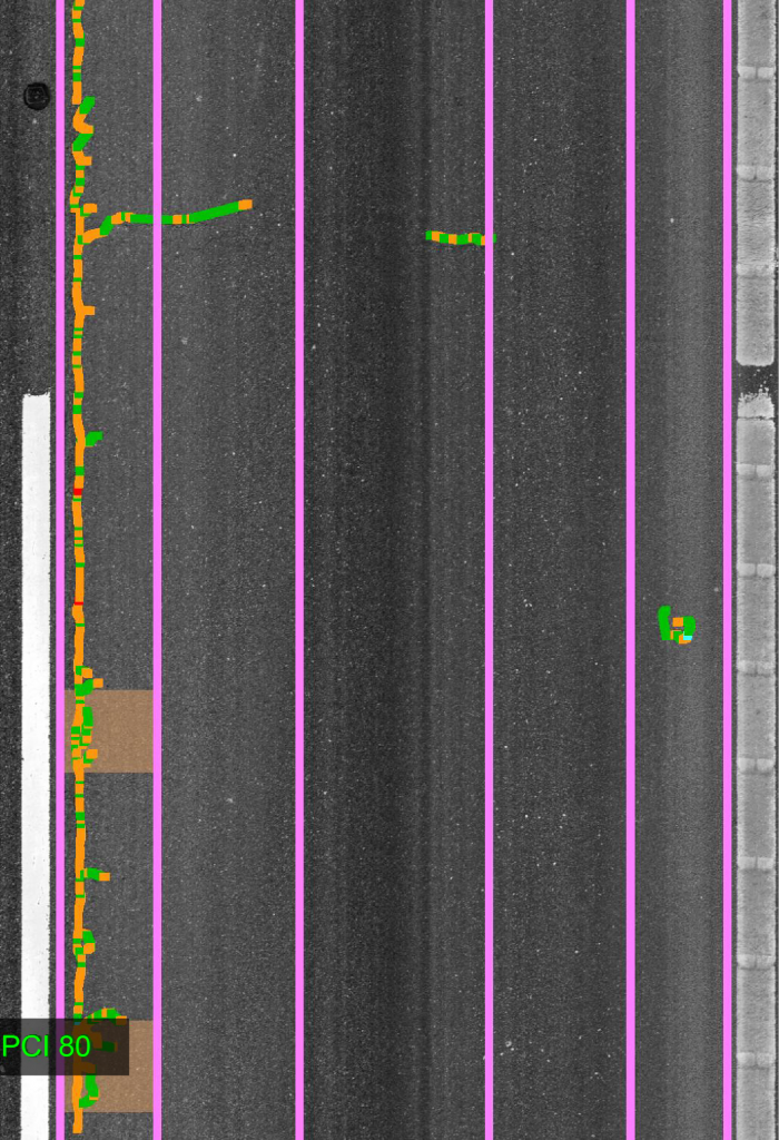 The Pavement Condition Index (PCI) method has long been considered a “gold standard” in comprehensive pavement evaluation. However being developed at a time when walking inspections were the norm, many of the distress items in the standard rely on subjective evaluation which brings with it low repeatability. The PCI method divides the surveyed area into sample units for which the severity and density of distress are evaluated. The values are then used to determine a deduct value in the calculation of the index rating. Per ASTM D6433-20 standard, PCI calculation provides a numerical rating scale of 0-100, 0 being the worst possible condition and 100 being the best condition.